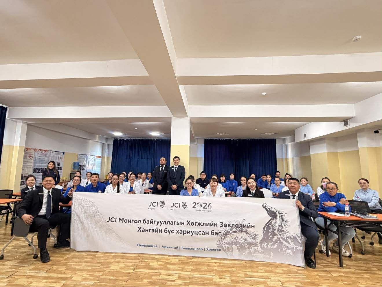 JCI Монгол байгууллагын Хөгжлийн Зөвлөлийн Хангайн бүс хариуцсан баг хамт олон Үе хоорондын манлайлал, OMOIYARI сэдэвт сургалтуудыг БОЭТ-ийн эмч, тасгийн эрхлэгч, тасгийн эд хариуцагч, захиргааны ажилтад хамрагдсан байна. Сургалтад нийт 60 гаруй эмч, эмнэлгийн ажилтан хамрагдсан байна.